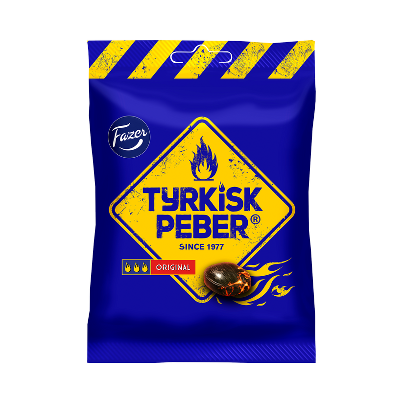 Tyrkisk Peber, often called Turkish pepper, is a legendary hard candy from Fazer with a spicy licorice flavor. Inside the candy, there's a salty licorice powder that both kids and adults love. Get ready for a taste sensation hotter than a Swedish sauna and more addictive than a Scandinavian TV series! Plus, Tyrkisk Peber is vegan, so everyone can enjoy its fiery charm.
